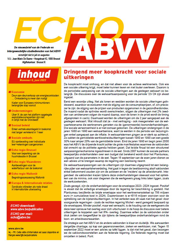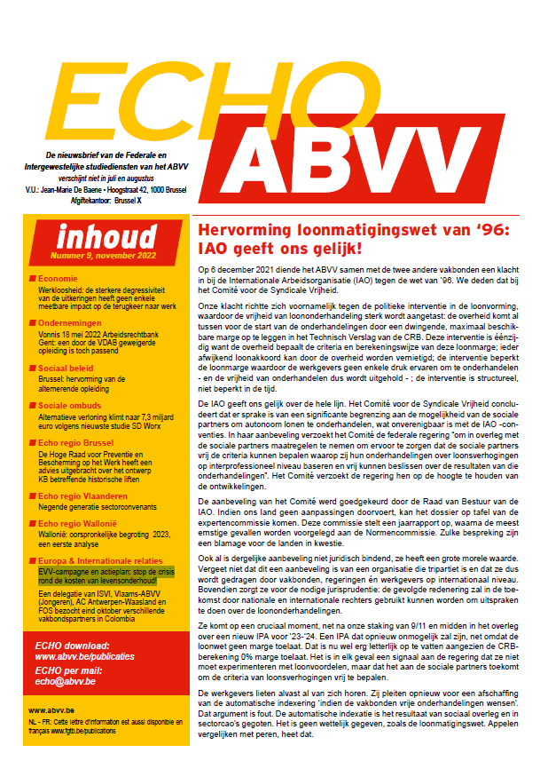 Loonrapport van de Internationale Arbeidsorganisatie (IAO) pleit voor hogere lonen | ABVV nam dit najaar deel aan federale Klimaattafels | Een basisveil