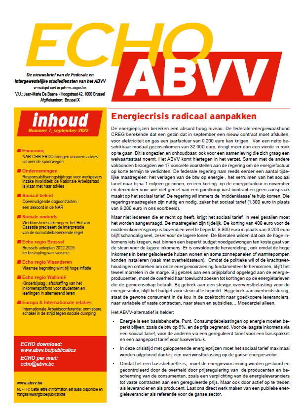 Energiecrisis radicaal aanpakken | NAR-CRB-FRDO brengen unaniem advies uit over de spoorwegen | Responsabiliseringsbijdrage voor werkgevers inzake invalidite
