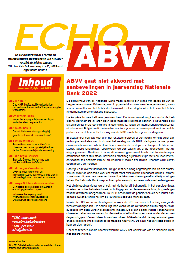 ABVV gaat niet akkoord met aanbevelingen in jaarverslag Nationale Bank 2022 | Cao NAR: hoofdzakelijkheidscriterium om sectorale harmonisatie 2de pensioenpijler te faciliteren |