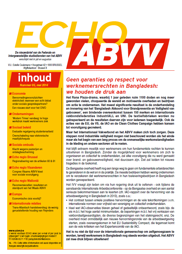 De nieuwsbrief van de studiediensten van het ABVV : Geen garanties op respect voor werknemersrechten in Bangladesh, we houden de druk aan