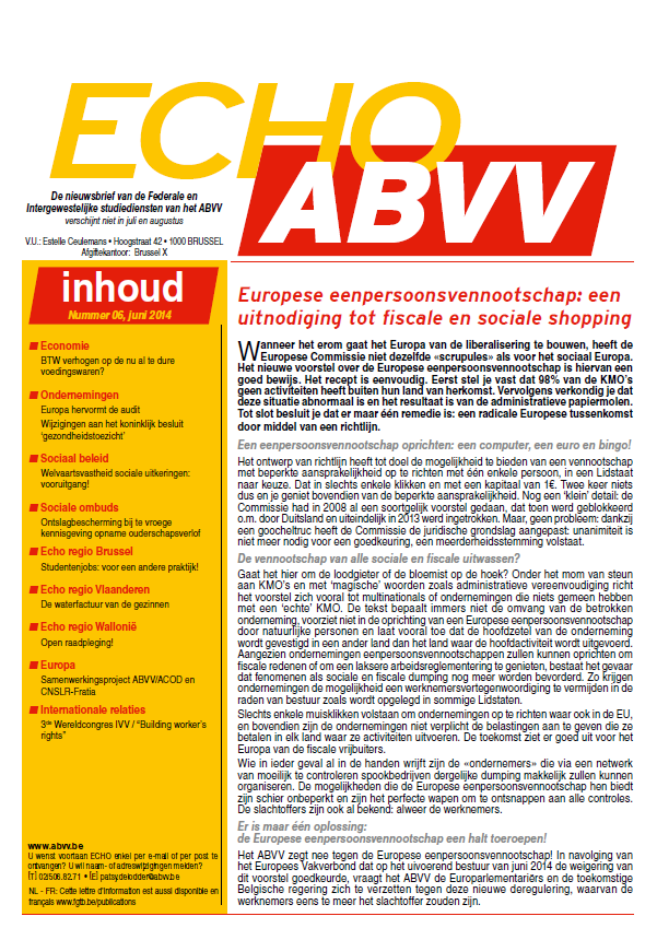 De nieuwsbrief van de studiediensten van het ABVV : Europese eenpersoonsvennootschap: een uitnodiging tot fiscale en sociale shopping