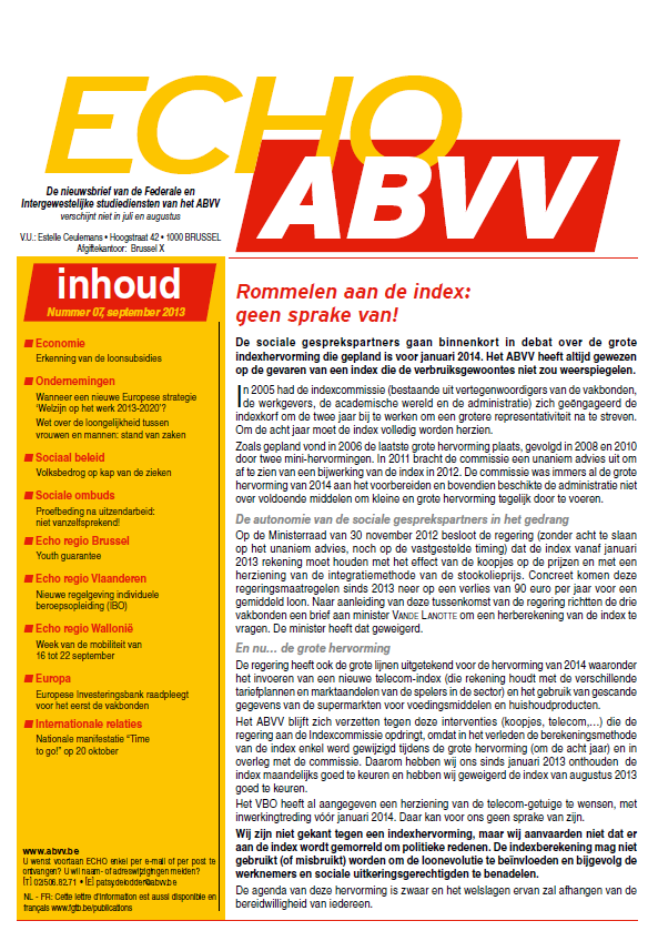 De nieuwsbrief van de studiediensten van het ABVV : Rommelen aan de index: geen sprake van !