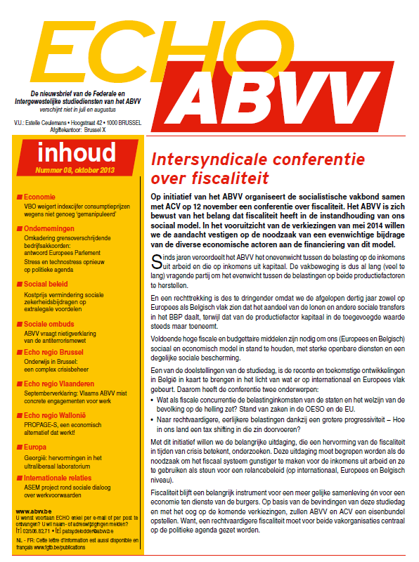 De nieuwsbrief van de studiediensten van het ABVV : Intersyndicale conferentie over fiscaliteit.