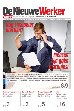 ABVV-ledenmagazine: Nog flexilbeler werken ? Mensen zijn geen machines! | De Grote Parade | Democratie is niet te koop | Besparingen: laagste inkomens hardst getroffen | We laten onze actiemiddelen niet amputeren.