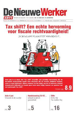 Juni 2015 De Nieuwe Werker nr. 10 - 2015 ABVV ledenmagazine: Actie 4 juni: Vrouwen in de vuurlijn | Handelsverdrag EU-VS ... schaadt je job en je gezondheid | Dossier: Tax shift? Een echte hervorming voor fiscale rechtvaardigheid Andere publicaties Delen
