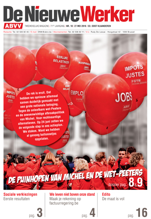 Ledenblad van het ABVV: De puinhopen van Michel en de wet-Peeters | Sociale verkiezingen: eerste resultaten | We leven niet boven onze stand - Maak je rekening op factuurregering.be | Edito: de maat is vol
