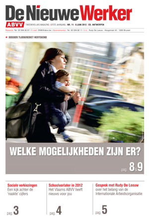ABVV-ledenmagazine : Dossier: Tijdskrediet hertekend: welke mogelijkheden zijn er? | Sociale verkiezingen: een kijk achter de naakte cijfers | Schoolverlater in 2012: het Vlaams ABVV heeft nieuws voor jou | Gesprek met Rudy De Leeuw over het belang van de Internationale Arbeidsorganisatie.