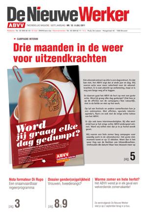 Juli 2011 De Nieuwe Werker nr. 13 - 2011 ABVV-ledenmagazine: Drie maanden in de weer voor uitzendkrachten | Nota formateur: onaanvaardbaar regeerprogramma | Gender(on)gelijkheid: vrouwen tweederangs? Andere publicaties Delen