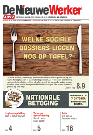 Oktober 2015 De Nieuwe Werker nr. 16 - 2015 ABVV ledenmagazine: Welke sociale dossiers liggen nog op tafel? | Loopbaanbegeleiding geeft je zelfvertrouwen | Verhoogde tegemoetkoming. Betaal 1 euro bij de dokter | Edito: Het kan en het moet anders Andere publicaties Delen