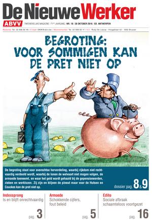 Ledenblad van het ABVV: Begroting: voor sommigen kan de pret niet op | Indexsprong is en blijft onrechtvaardig | Armoede: slechte cijfers, fout beleid | Edito: Sociale afbraak schaamteloos voortgezet