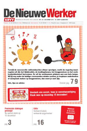 December 2014 De Nieuwe Werker nr. 20 - 2014 ABVV-ledenmagazine: Staak mee op 15 december! | Provinciale stakingen geslaagd : Nu samen sterk op 15 december | Edito : Verkeerd beleid, verkeerd argumenten. Andere publicaties Delen