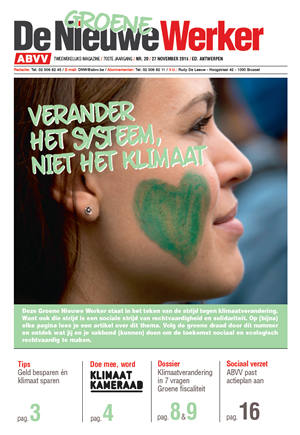 November 2015 De Nieuwe Werker nr. 20 - 2015 ABVV ledenmagazine: Tips: Geld besparen én klimaat besparen | Doe mee, word klimaatkameraad | Dossier: Klimaatverandering in 7 vragen. Groene fiscaliteit | Sociaal verzet: ABVV past actieplan aan Andere publicaties Delen
