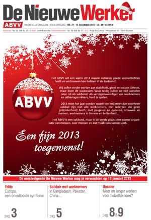 December 2012 De Nieuwe Werker nr. 21 - 2012 ABVV-ledenmagazine: Europa, een onvoltooide symfonie | Solidair met werknemers in Bangladesh, Pakistan China, ... | Meer en langer werken voor hetzelfde loon ? Andere publicaties Delen