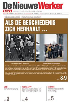 Maart 2012 De Nieuwe Werker nr. 5- 2012 ABVV-ledenmagazine : Als de geschiedenis zich herhaalt ... | Mentaliteitswijziging | Vlaams ABVV: nieuw loopbaanakkoord wil meer werk voor jong en oud | Colombia: internationale solidariteit in de praktijk. Andere publicaties Delen