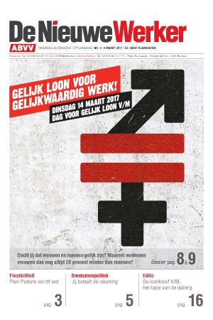 Ledenblad van het ABVV : Gelijk loon voor gelijkwaardig werk! Dinsdag 14 maart 2017 Dag voor gelijk loon V/M | Flexibiliteit : Plan-Peeters wordt wet | Broeksriempolitiek : jij betaalt de rekening | Edito : de loonkloof V/M, het topje van de ijsberg.