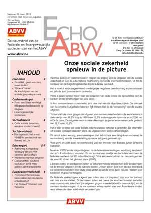 Maart 2010 Echo ABVV nr. 3 - 2010 Nieuwsbrief van de studiediensten van het ABVV:Onze sociale zekerheid opnieuw in de picture Download Andere publicaties Delen