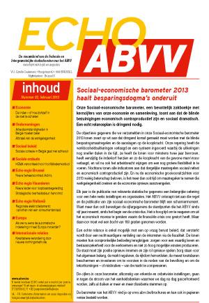 Maart 2013 Echo ABVV nr. 3 - 2013 Nieuwsbrief van de studiediensten van het ABVV : Stop de aanvallen op de sociale dialoog en het sociaal recht Download Andere publicaties Delen