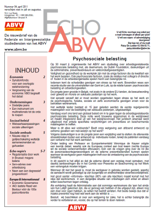 April 2011 Echo ABVV nr. 4 - 2011 Nieuwsbrief van de studiediensten van het ABVV:Psychosociale belasting Andere publicaties Delen