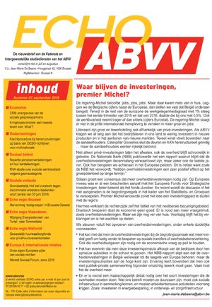 September 2016 Echo ABVV nr. 7 - 2016 Nieuwsbrief van de studiediensten van het ABVV: Waar blijven de investeringen, premier Michel ? Download Andere publicaties Delen
