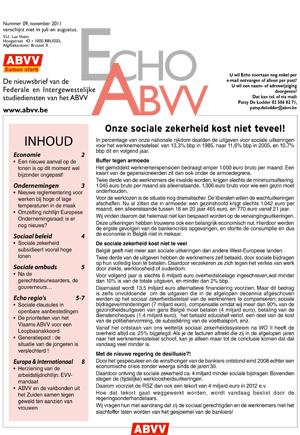 November 2011 Echo ABVV nr. 9 - 2011 Nieuwsbrief van de studiediensten van het ABVV:Onze sociale zekerheid kost niet te veel! Andere publicaties Delen