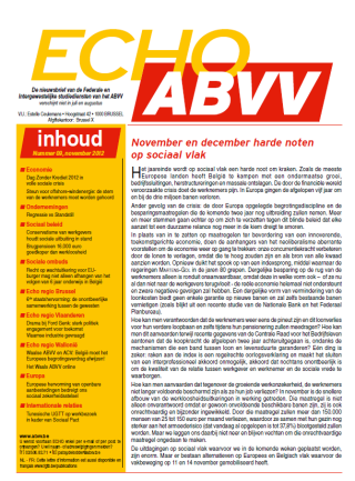 Februari 2013 Echo ABVV nr. 9 - 2012 Nieuwsbrief van de studiediensten van het ABVV: November en december harde noten op sociaal vlak Download Andere publicaties Delen